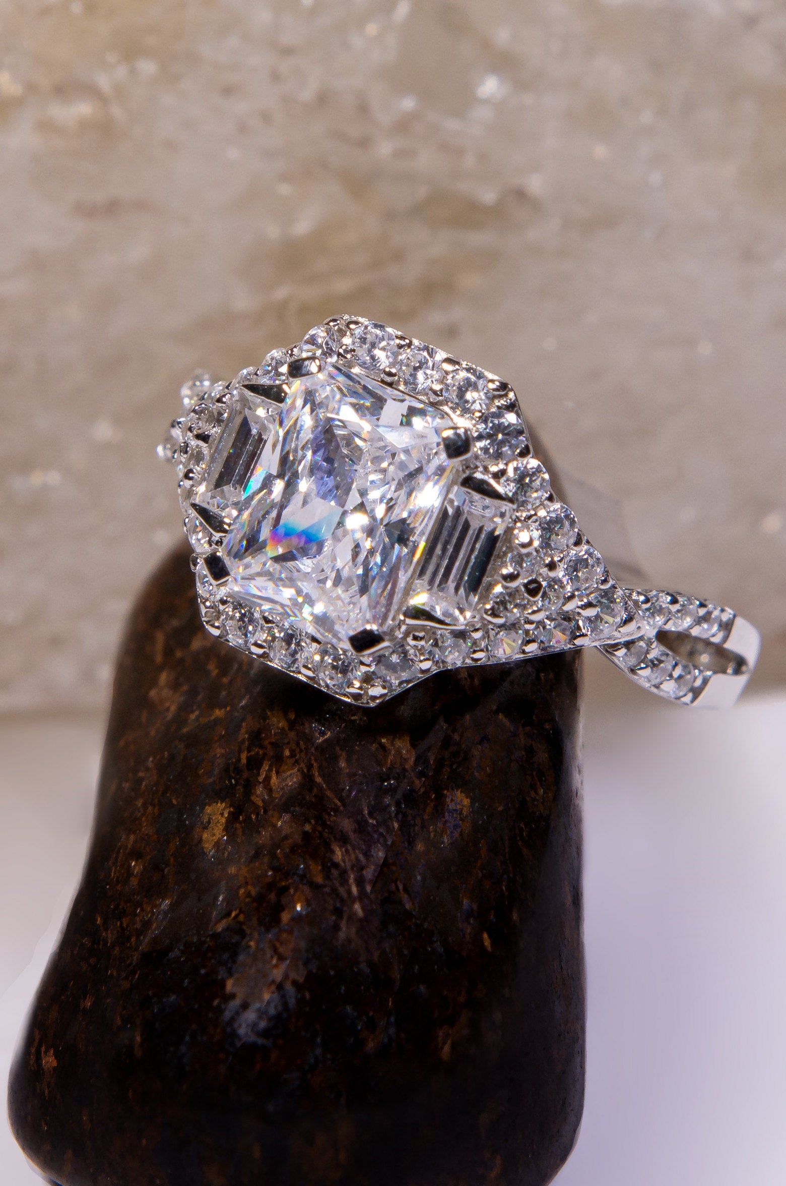Anillo con tres zirconias corte baguette y corte diamante en plata 925