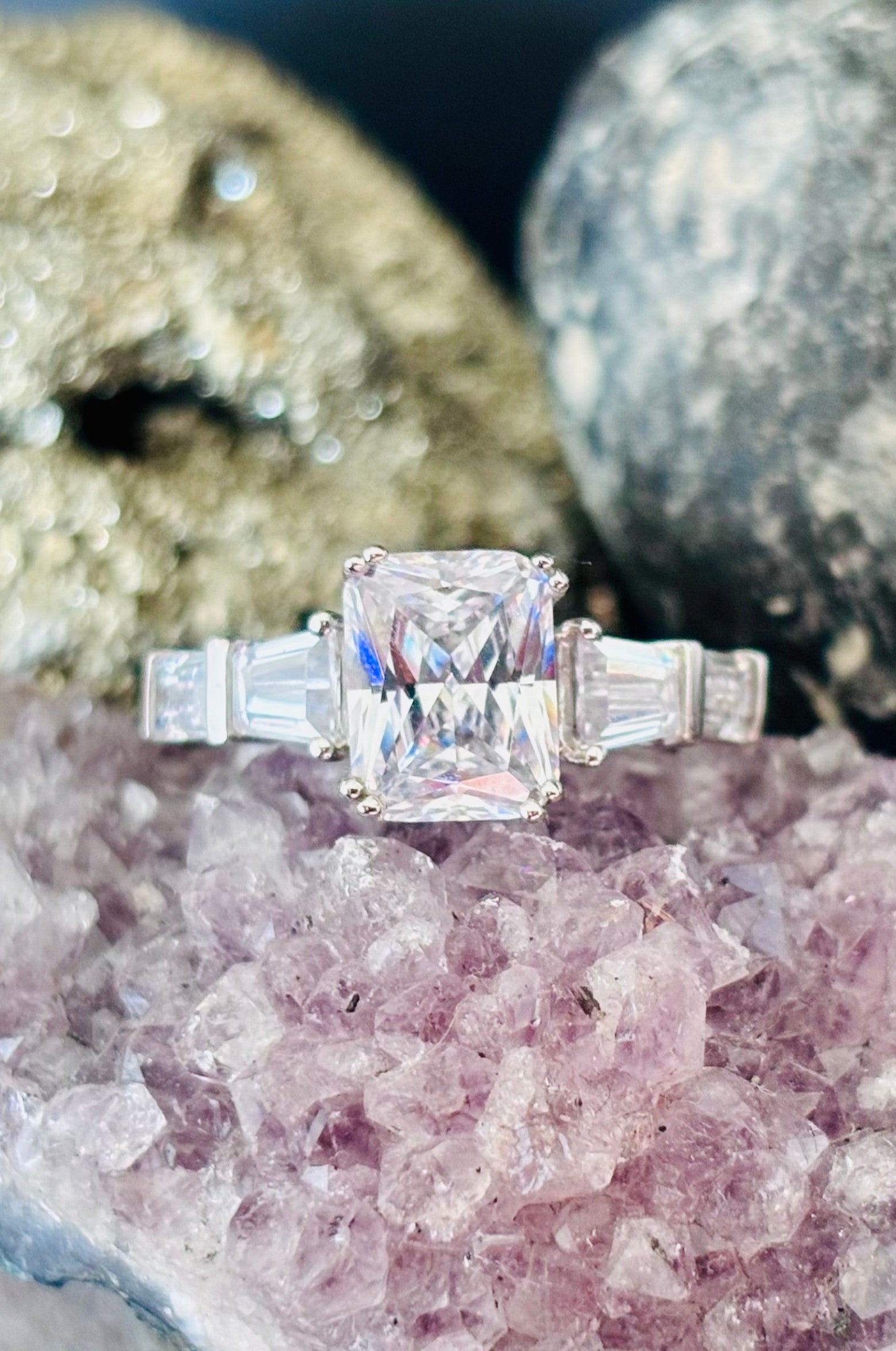 Anillo con zirconita corte esmeralda y baguette en plata 925