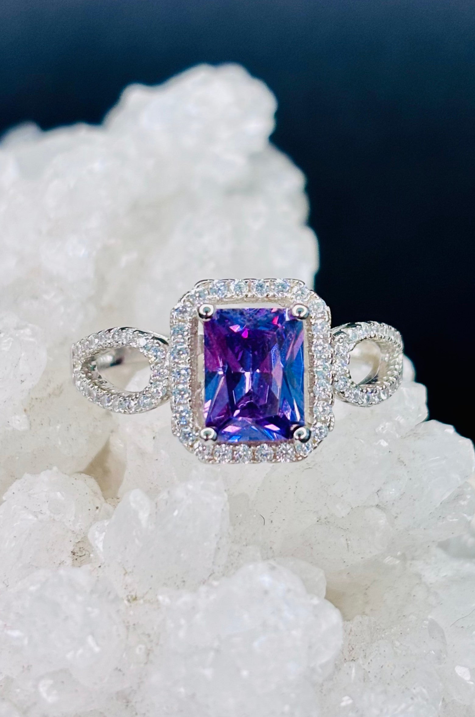 Anillo con zirconita púrpura corte esmeralda en plata 925