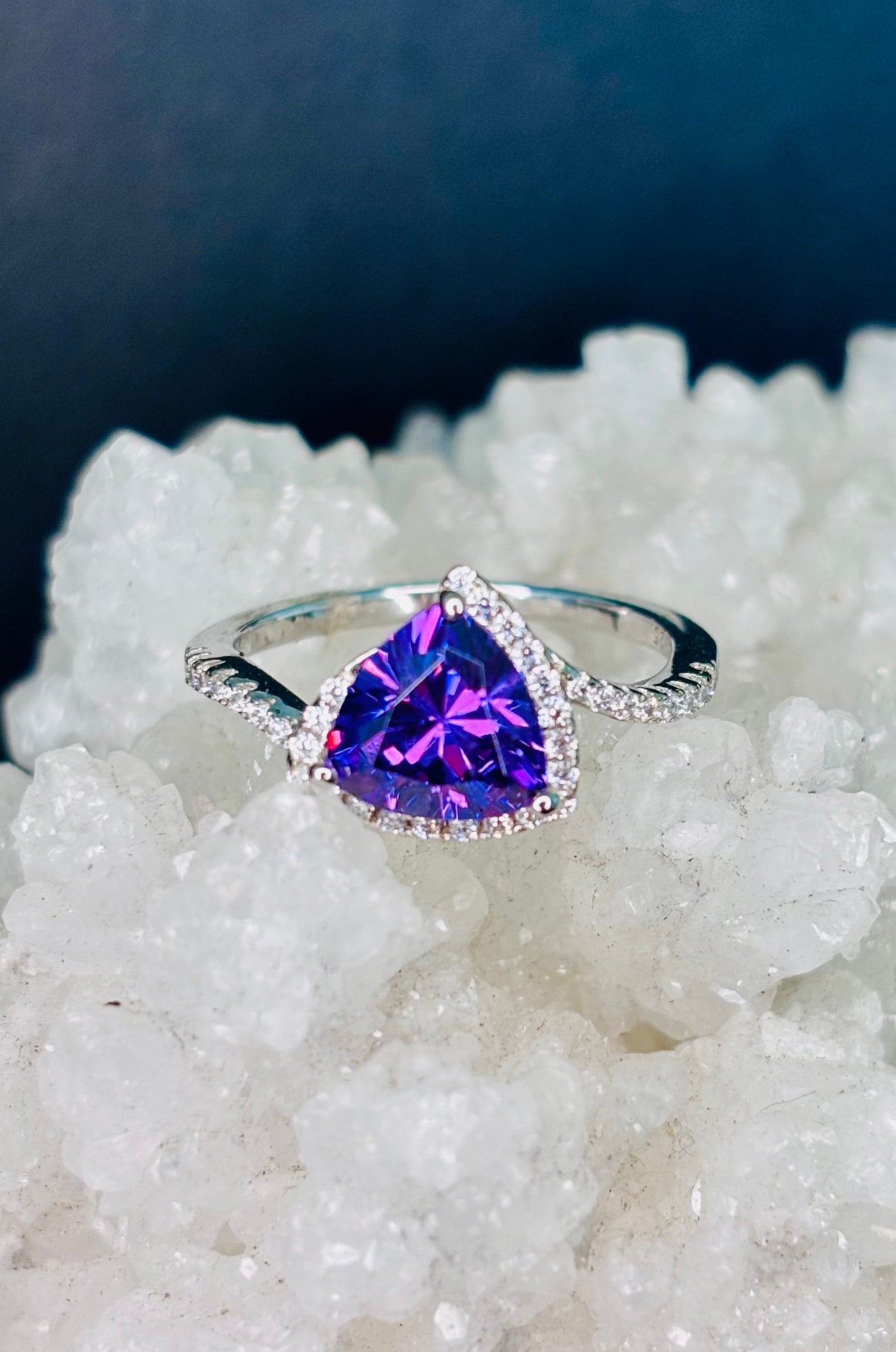 El anillo con zirconita púrpura corte trillion en plata 925 es una pieza deslumbrante que combina modernidad y sofisticación. Este anillo presenta una zirconita de corte trillion en un vibrante tono púrpura, que aporta un toque de color y luminosidad a cualquier atuendo. Fabricado en plata 925 de alta calidad, garantiza durabilidad y un acabado brillante que resalta la belleza de la piedra. Ideal para ocasiones especiales o como un regalo significativo, este anillo es perfecto para quienes buscan un accesorio que combine estilo y originalidad. Con su diseño distintivo y su atractivo color, el anillo con zirconita púrpura corte trillion es una expresión de elegancia que seguramente capturará la atención.