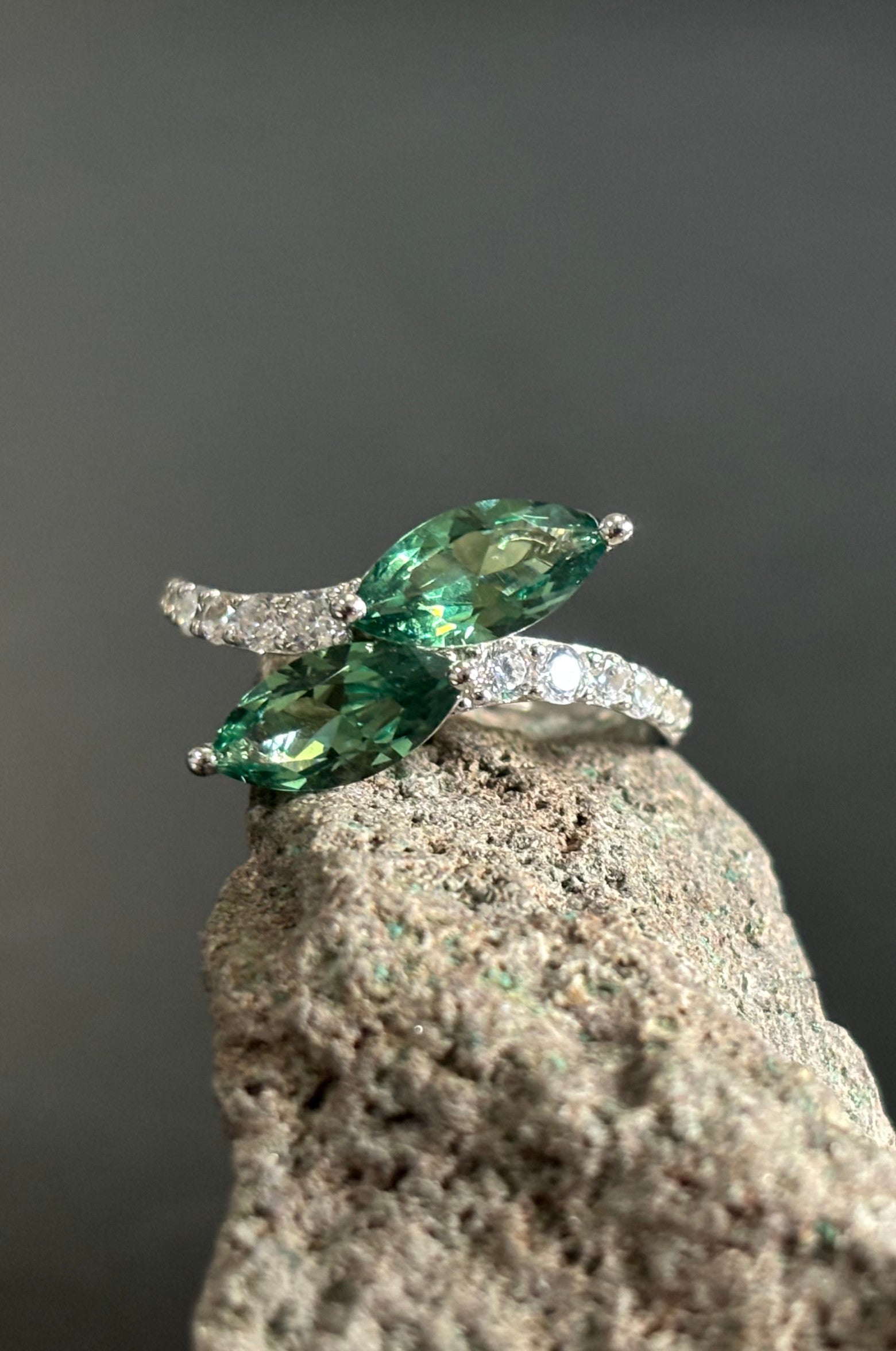 Anillo con zirconita verde aqua corte marquesa en plata 925