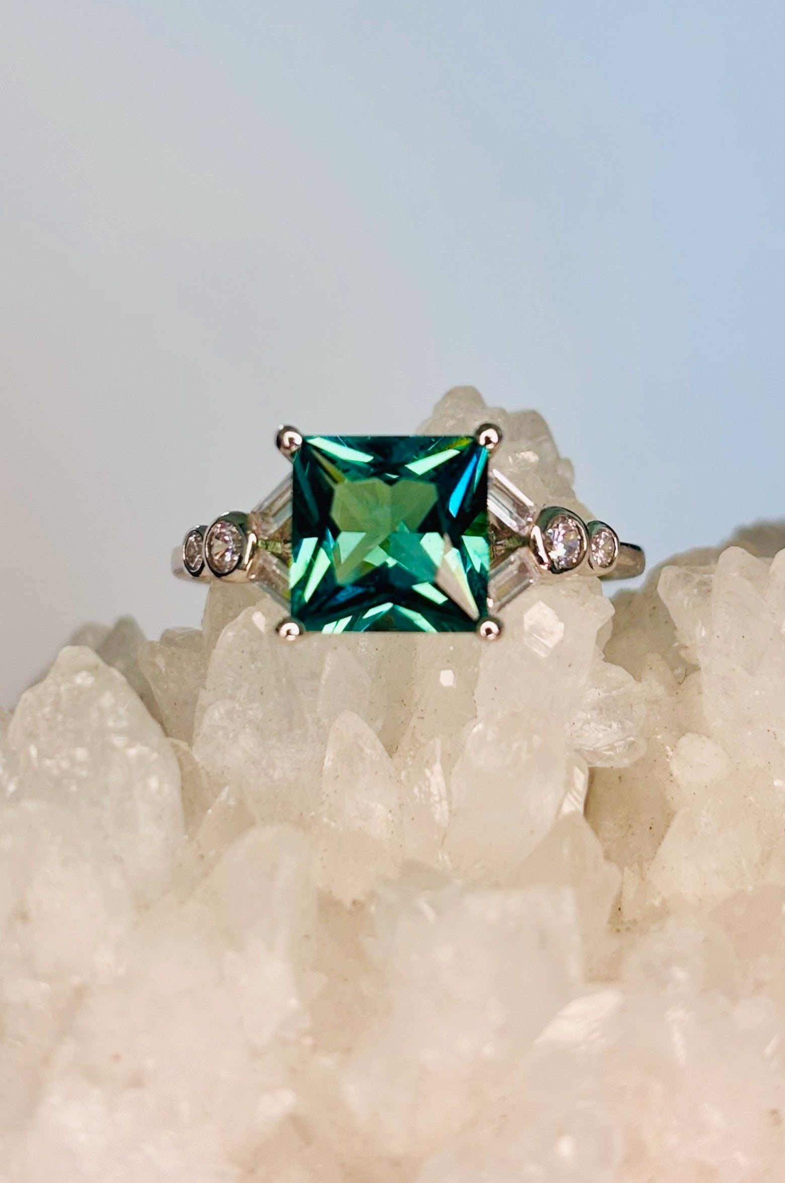 Anillo con zirconita verde aqua corte princesa en plata 925