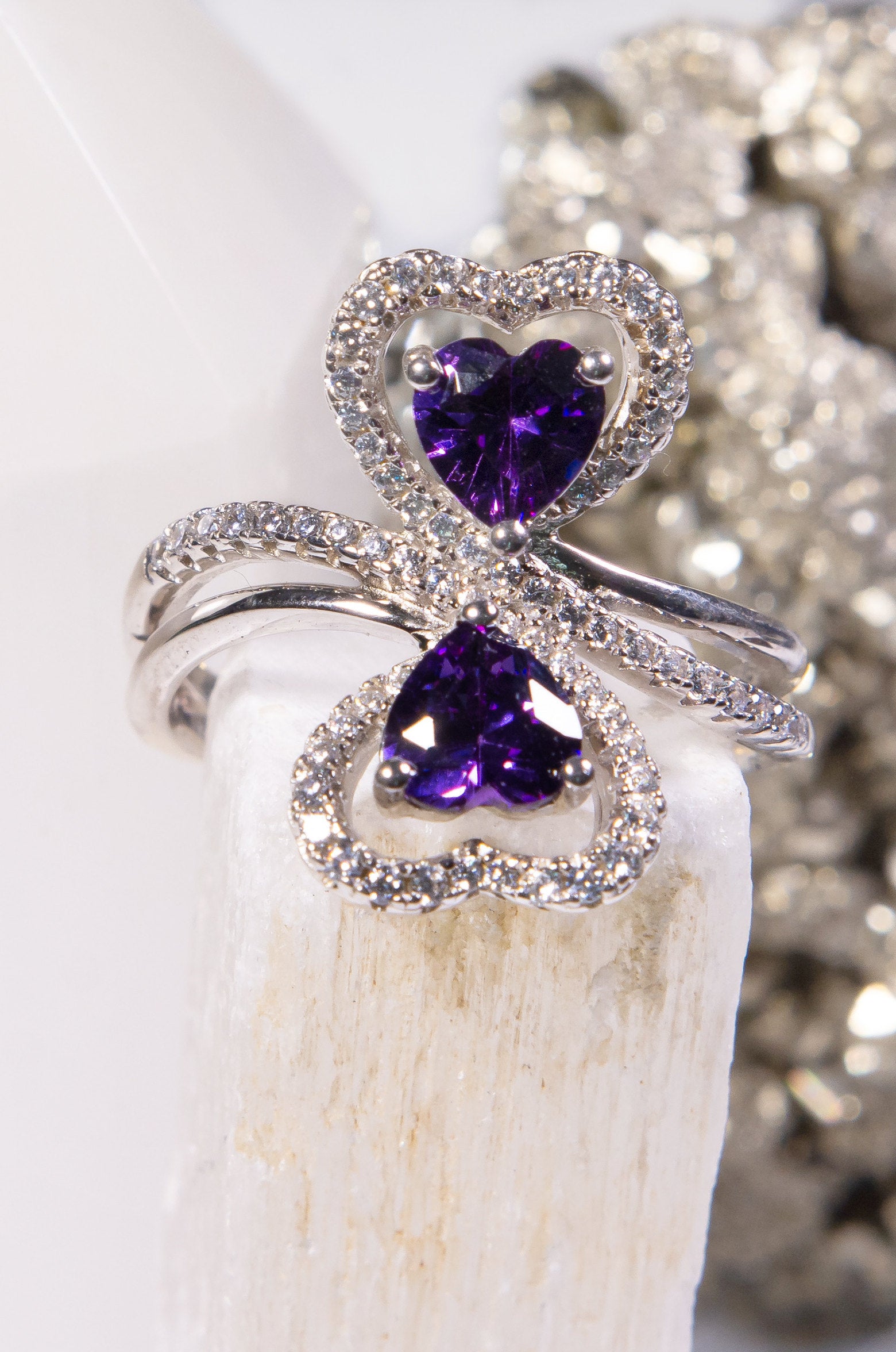 Descubre la romántica belleza de nuestro anillo doble corazón con zirconitas púrpura y zirconitas blancas corte diamante en plata 925. Este encantador anillo presenta un diseño único en forma de dos corazones entrelazados, adornados con deslumbrantes zirconitas púrpura que aportan un toque de color vibrante, complementadas por zirconitas blancas en corte diamante que brillan con elegancia. Fabricado en plata 925 de alta calidad, este anillo no solo es duradero, sino que también simboliza el amor y la conexión especial entre dos personas. Ideal como regalo para esa persona significativa en tu vida o como una hermosa adición a tu colección de joyas. ¡Deja que este anillo exprese tus sentimientos con su diseño único y deslumbrante!