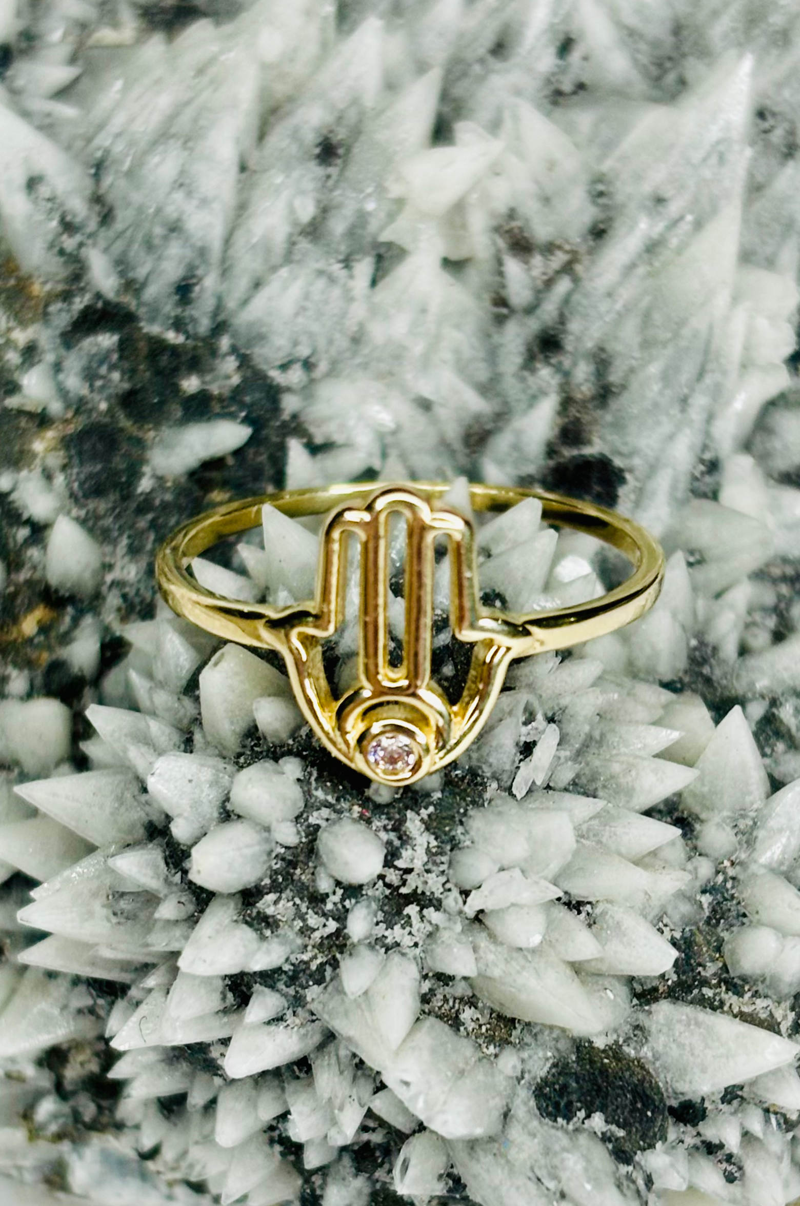 Anillo Hamsa con Zirconita en Oro Amarillo 10k