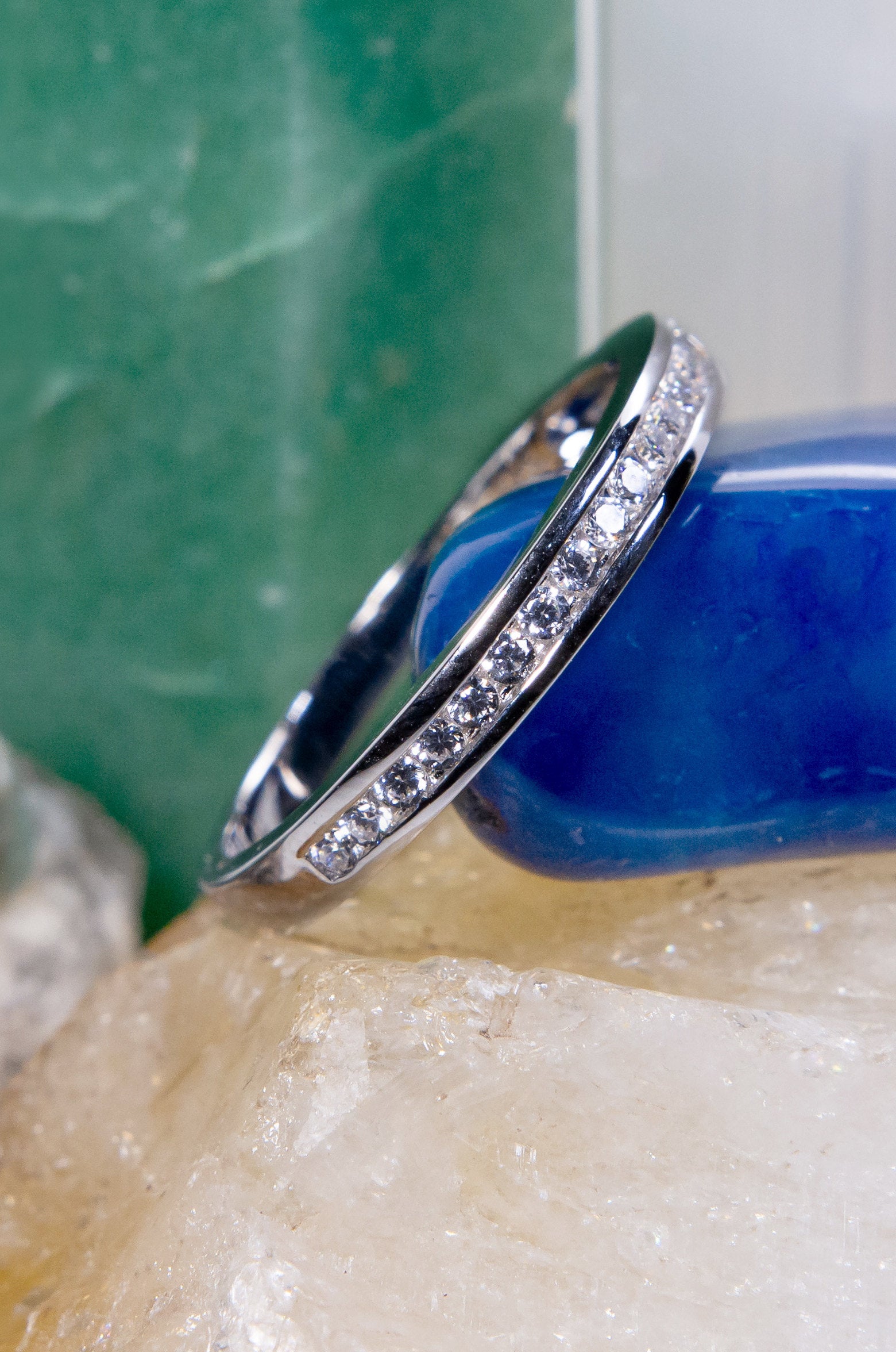 Anillo media churumbela delgada con zirconitas corte diamante en plata 925