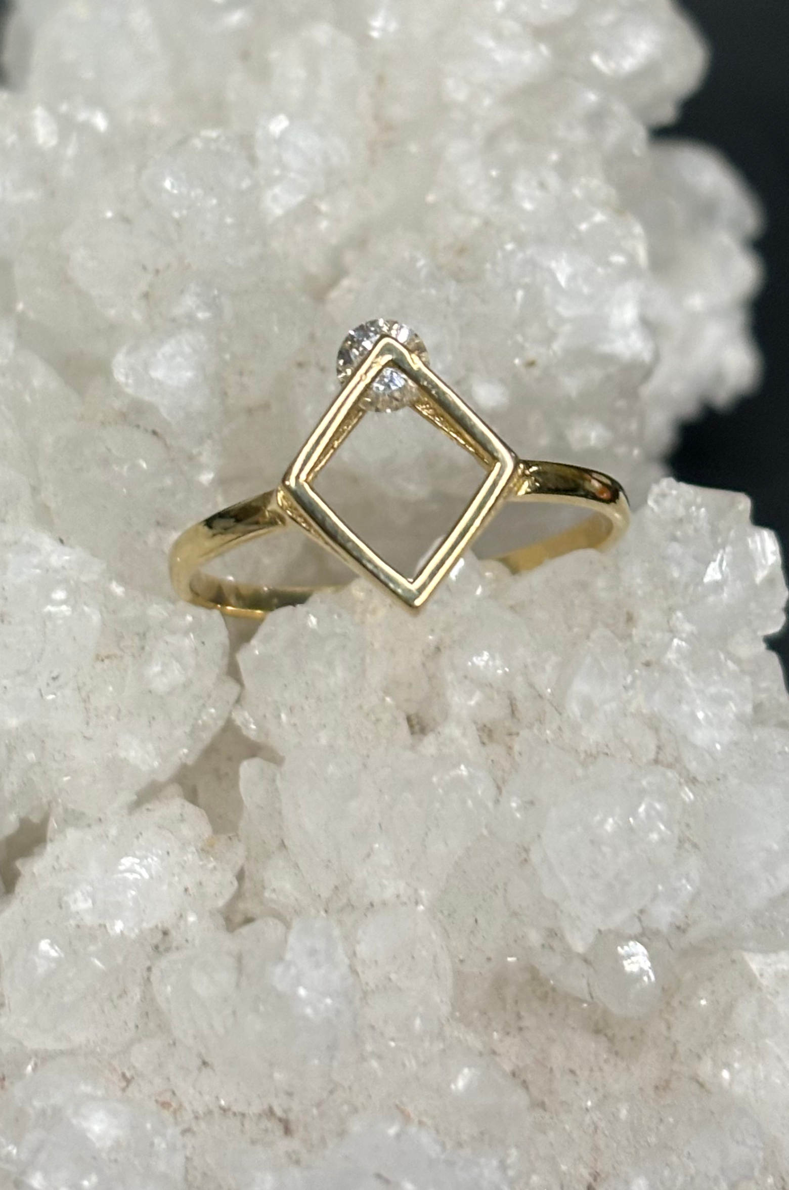 Anillo Rombo con Zirconita Corte Redondo en Oro Amarillo 14k