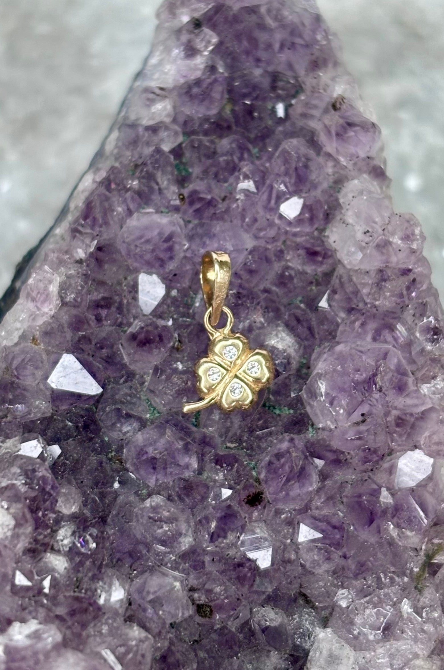 Atrae la buena fortuna con este encantador dije de mini trébol de cuatro hojas, elaborado en oro italiano de 10K y adornado con delicadas zirconitas redondas que brillan con cada movimiento. su diseño diminuto y refinado simboliza suerte, amor y prosperidad con un toque de elegancia moderna.