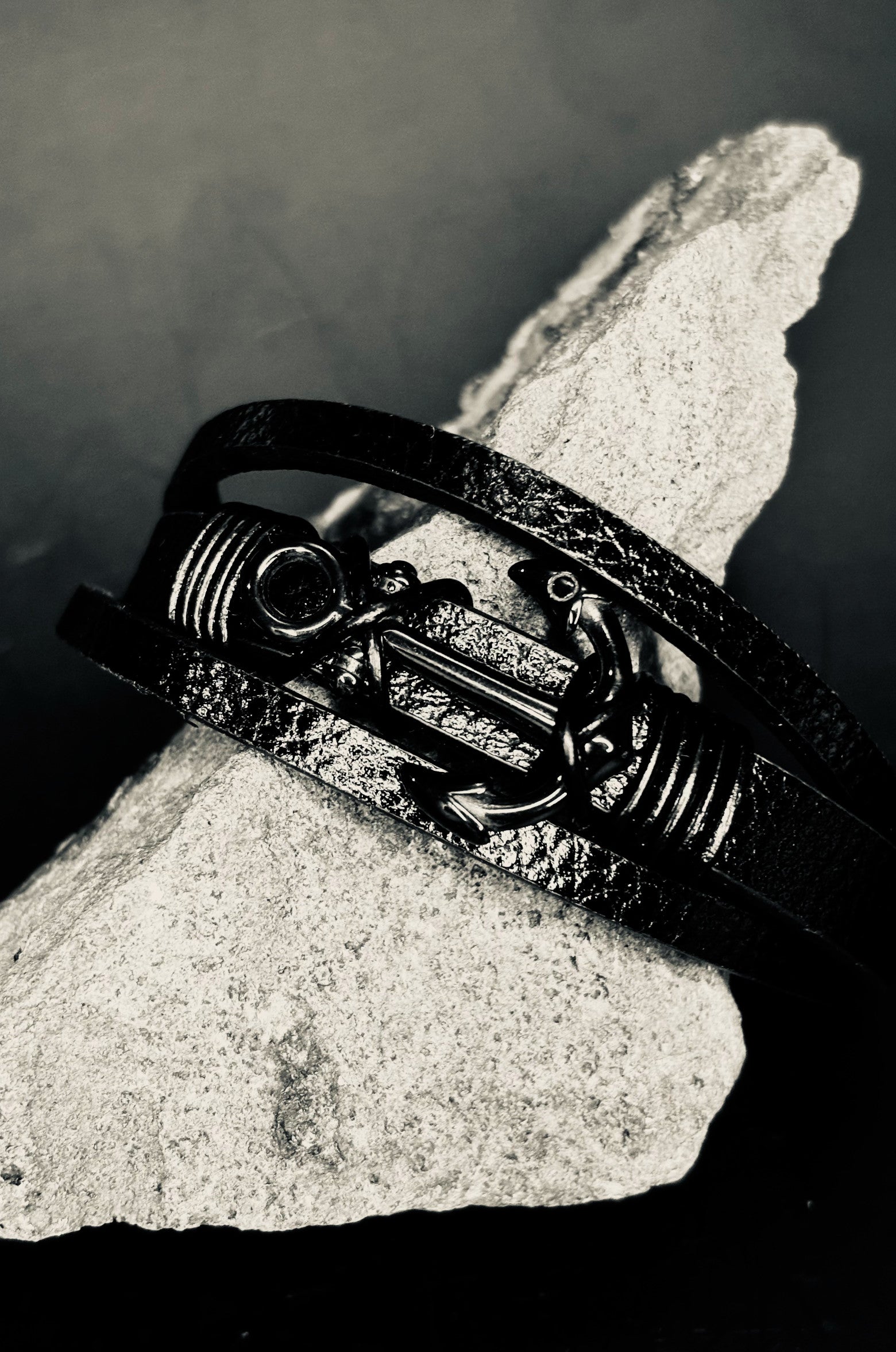 Descubre la originalidad de nuestra pulsera de ancla en piel negra con cerradura magnética, 20.5 cm de largo. Este accesorio combina la elegancia de la piel negra con un diseño distintivo de ancla, simbolizando estabilidad y fuerza. La pulsera es perfecta para quienes buscan un estilo moderno y significativo.