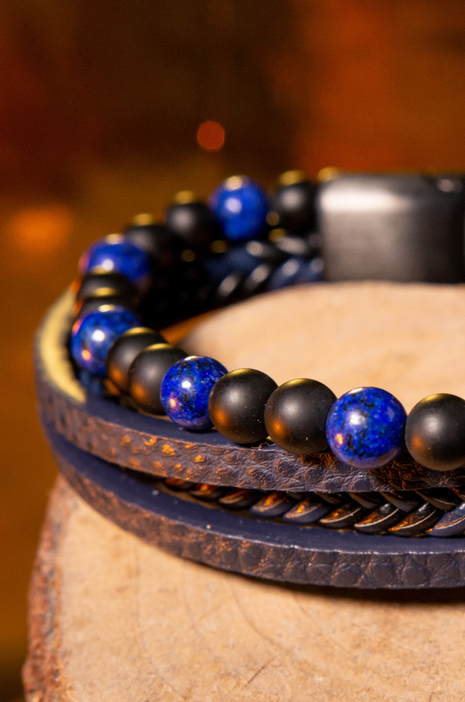 Pulsera en piel azul con lapislázuli, tamaño pequeño